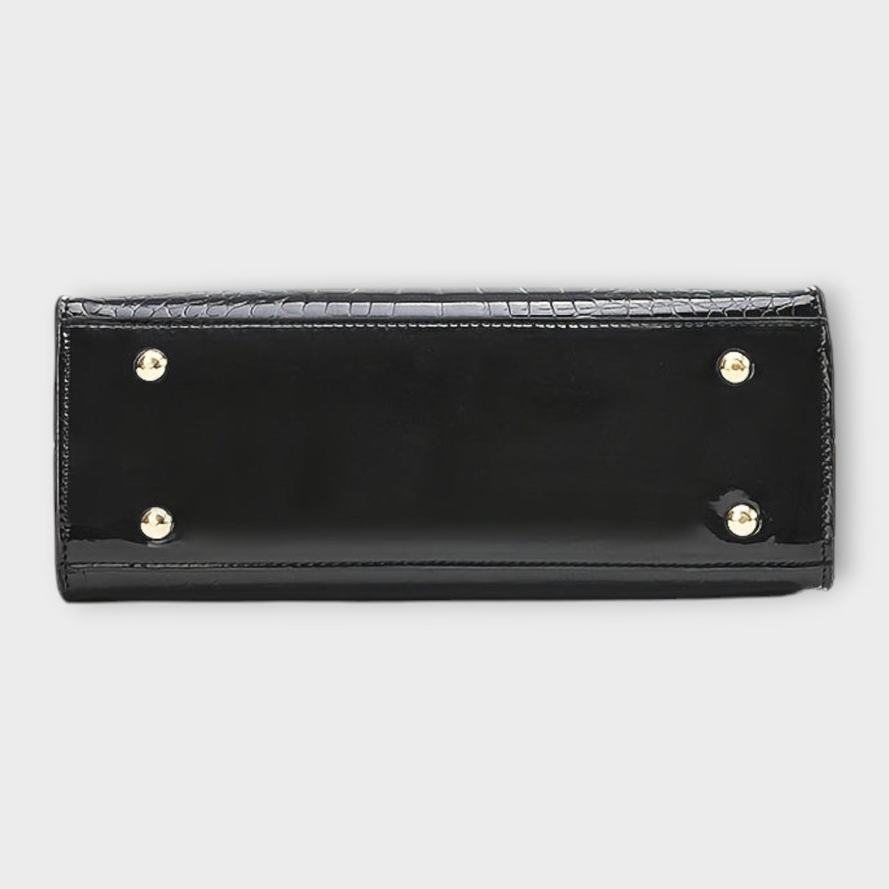 Step out in style with the Clara - Glossy Crocodile Pattern Handbag, the perfect blend of luxury and practicality for the modern individual.